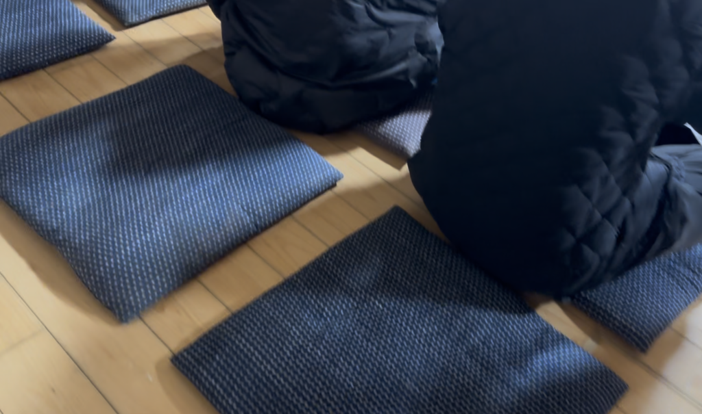 朝稽古は2時間。椅子はなくて座布団のみとのことで、足が耐えられるかな〜と不安もありつつ参加。
